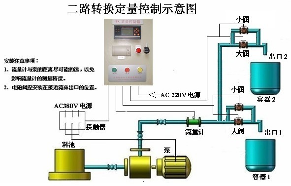 控制儀輸入為4-20mA或脈沖信號,帶外接啟動、停止、清零,兩個繼電器輸出。繼電器到電磁閥需加一個中間繼電器,如果電磁閥是24V供電,需增加一個24V開關(guān)電源。 注:指示燈、按鈕、中間繼電器、空氣開關(guān)、交流接觸器(可?。⒍靠刂苾x(液晶顯示)、控制箱、組成一個控制系統(tǒng),控制現(xiàn)場(24VDC)電磁閥啟動或停止,另要加一個總電源開關(guān)、流量計,電磁閥,需要按照現(xiàn)場要求來做。(配件可以用戶自己配)