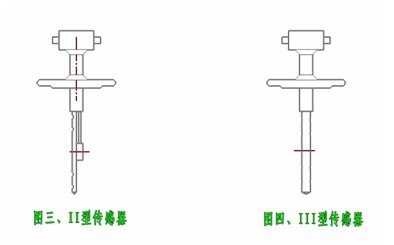 3.2.1、Ⅰ型,適用于(20~50)㎜的管道,外形如圖2所示。其檢測(cè)桿直徑一般為4.5~6.5㎜,傳感器與管道的連接方式有兩種:一種是螺紋連接,另一種是法蘭連接。用于高壓測(cè)量時(shí)都采用法蘭連接,如下圖所示