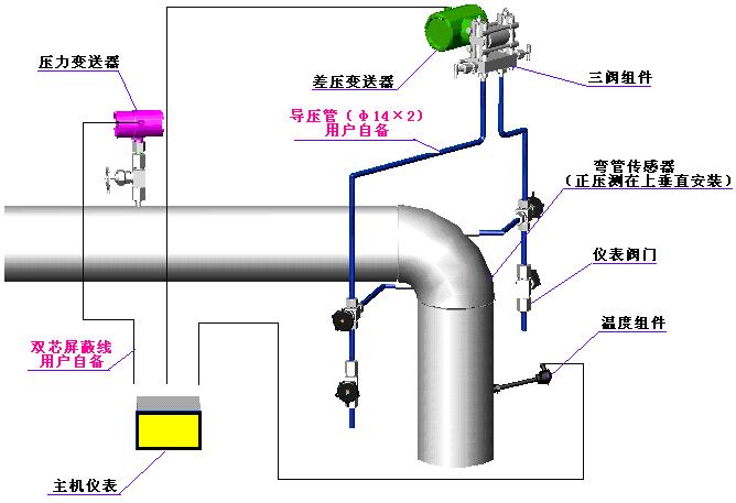 2. 測量蒸汽彎管流量計(jì)系統(tǒng)構(gòu)成